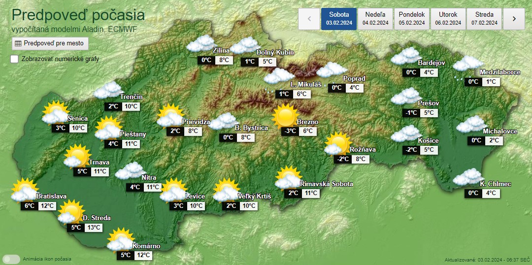 Pozsonyban és Komáromban 12, Dunaszerdahelyen 13, Léván és Nagykürtösön 10, Rimaszombatban 11, Rozsnyón 8, Kassán 5, Nagymihályon 2, Királyhelmecen pedig 4 fok körüli nappali csúcs várható.