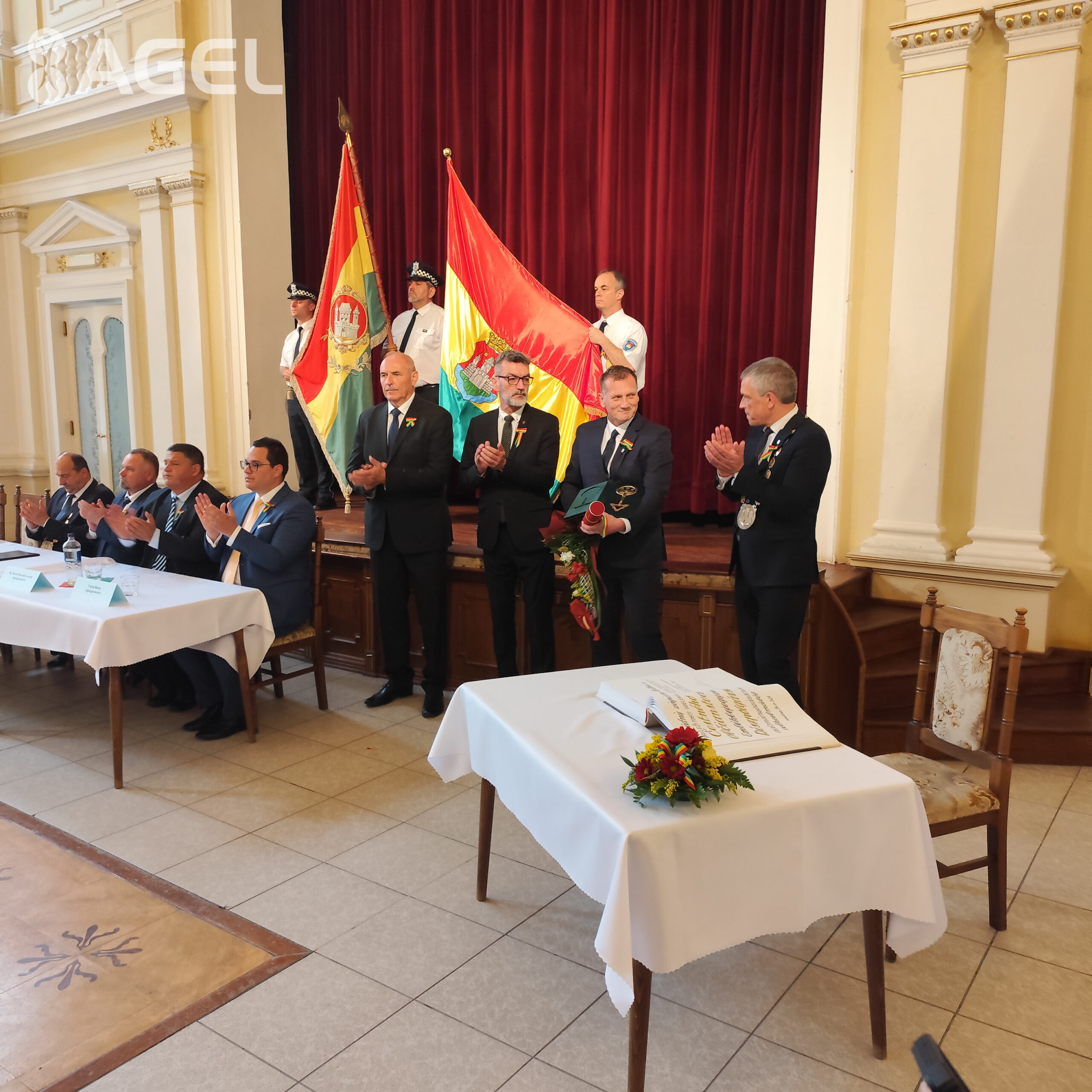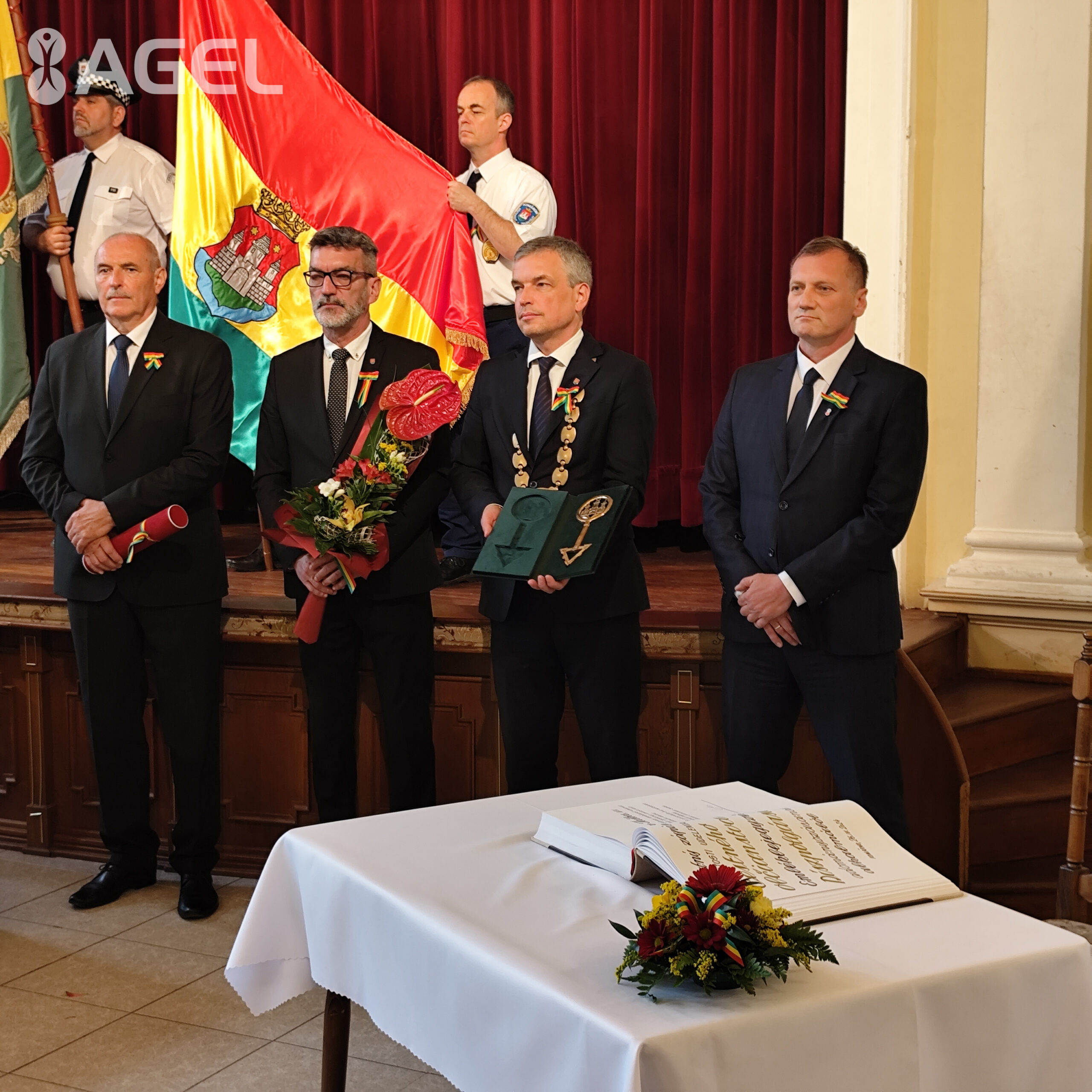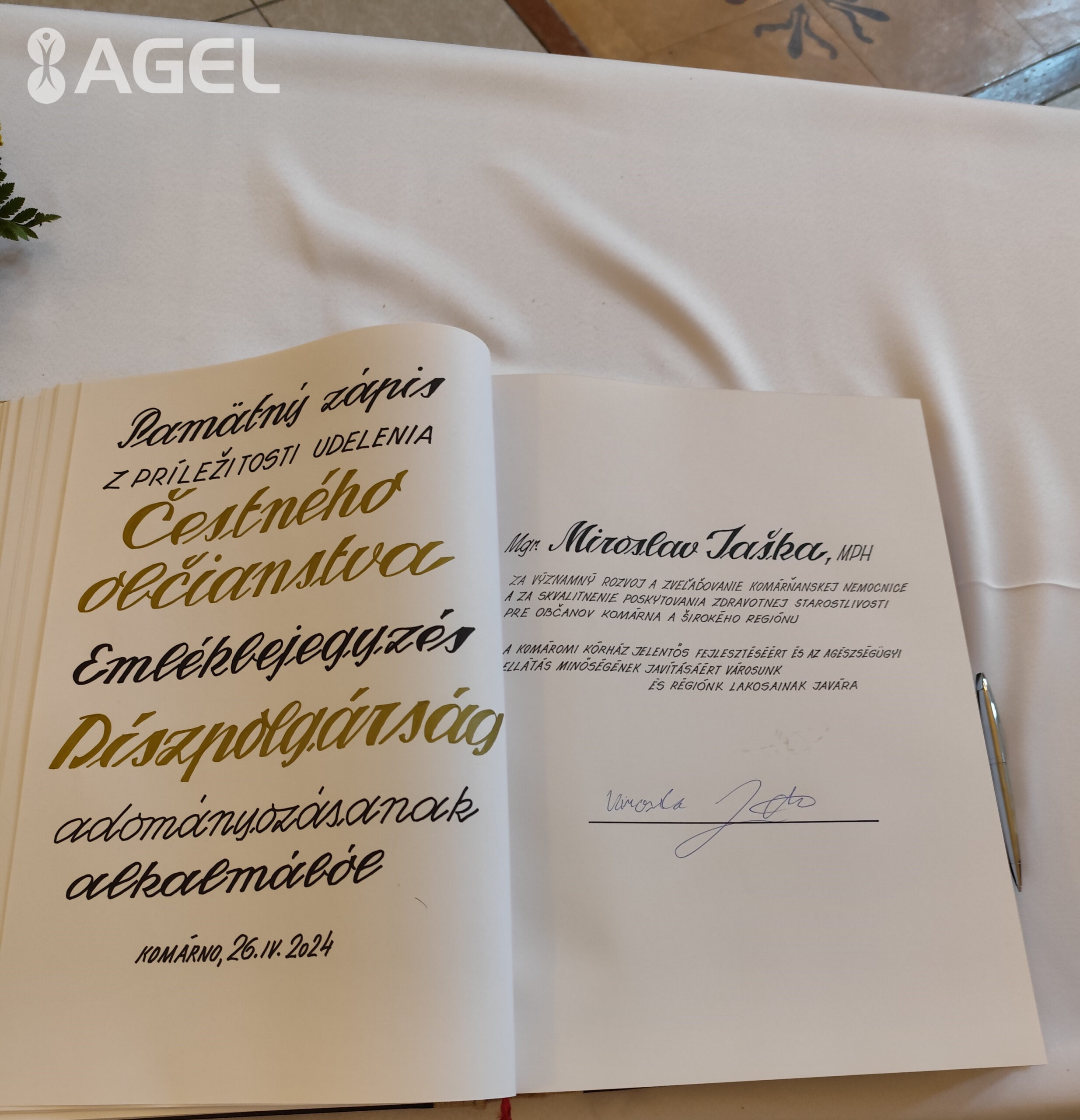 Miroslav Jaška, az AGEL komáromi kórházának igazgatója vehette át a komáromi városi képviselő-testület díját a város polgármesterétől.