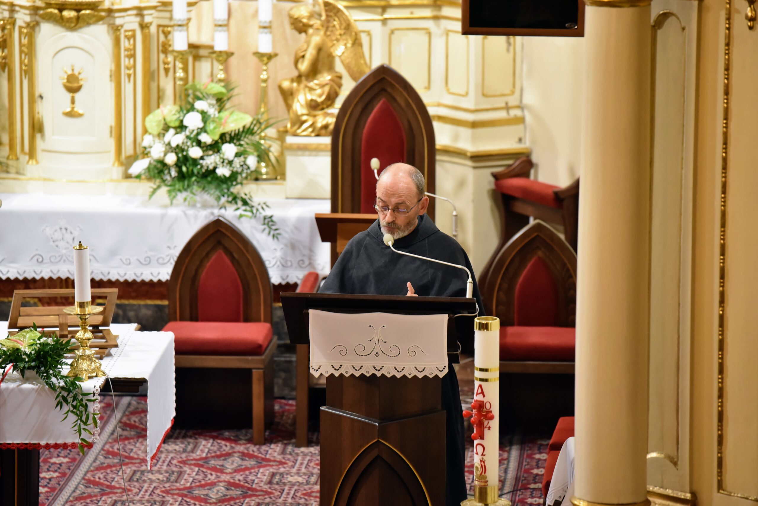 A beszámoló után szentmise következett, amelyen Pawel atya homíliájában megjegyezte: „Popieluszko atya 1982-től miséket mutatott be a hazáért. Jelmondata a »Győzd le a rosszat jóval!« volt, ami gyakorlatilag a megbocsátást jelenti. 1996-ban, amikor II. János Pál pápa Győrbe látogatott, Jerzy atya édesanyja, Marianna is elkísérte. Bár fiát több napig kínozták, azt mondta: »Imádkozom gyilkosainak megtéréséért.«”