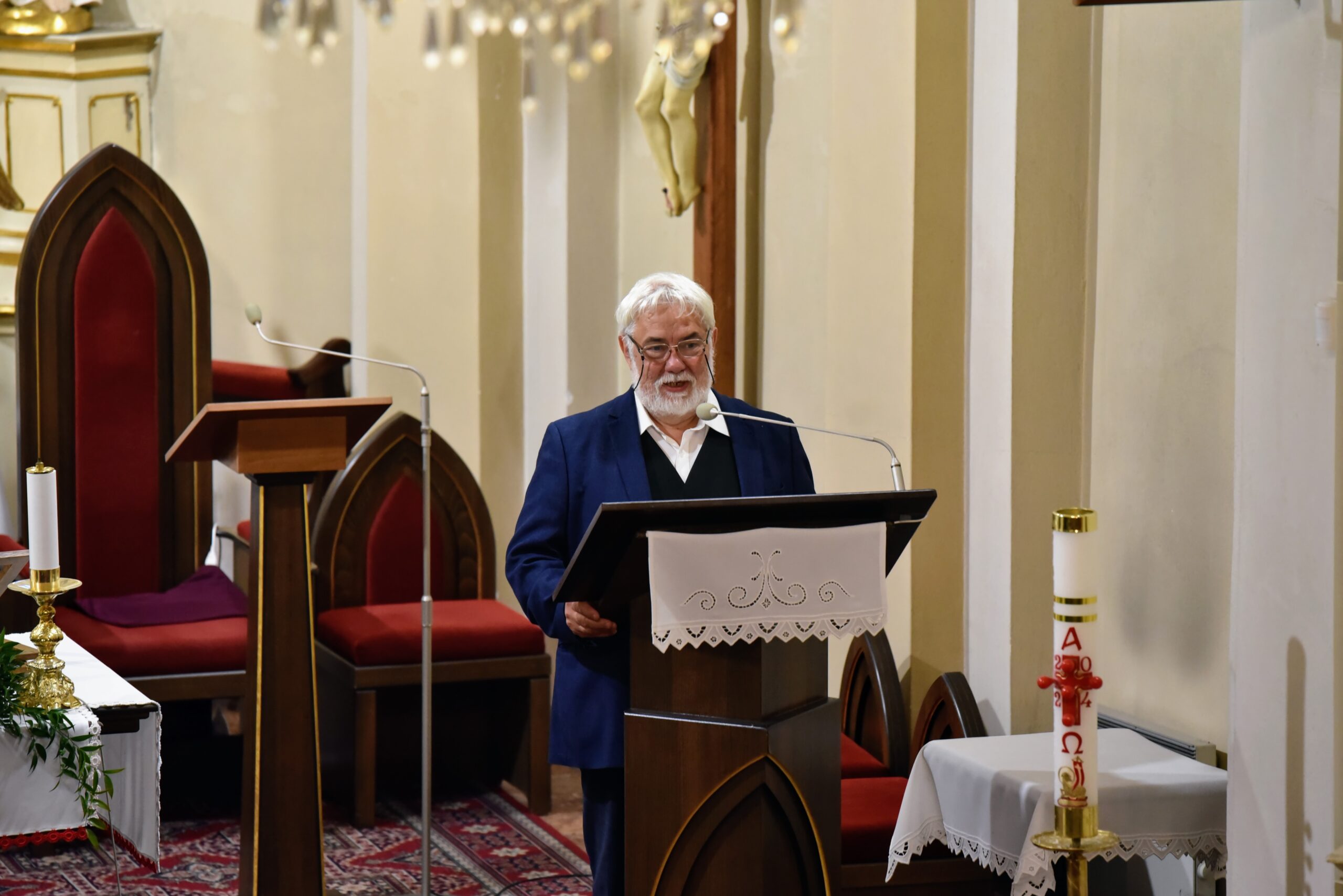 Molnár Imre történész a kiengesztelődés mártírját, Boldog Jerzy Popieluszko atyát mutatta be a híveknek. Beszámolójában Boldog Jerzy atyát is idézte: „A szentek vonzzák egymást. Ne féljetek szentekké válni!” Az atyát 1972-ben Stefan Wyszynski bíboros szentelte pappá. Jerzy atya már fiatal papként a nép szolgálatában végezte szolgálatát, így lett a lengyel Szolidaritás független szakszervezet káplánja. Ebben az időben felcsillant a remény, hogy a kommunizmus hatalmából –Moszkva fogságából– ki lehet törni. Élesen bírálta a rendszert, az igazságtalanságot, aminek következményeként megfigyelték, megfenyegették, letartóztatták. A szeretetet, az imádságot, a megbocsátást használta lengyel testvéreivel együtt a lélektelen rendszerrel szemben. 1984-ben halt vértanúhalált embertelen körülmények között. Ennek idén lesz a 40. évfordulója.