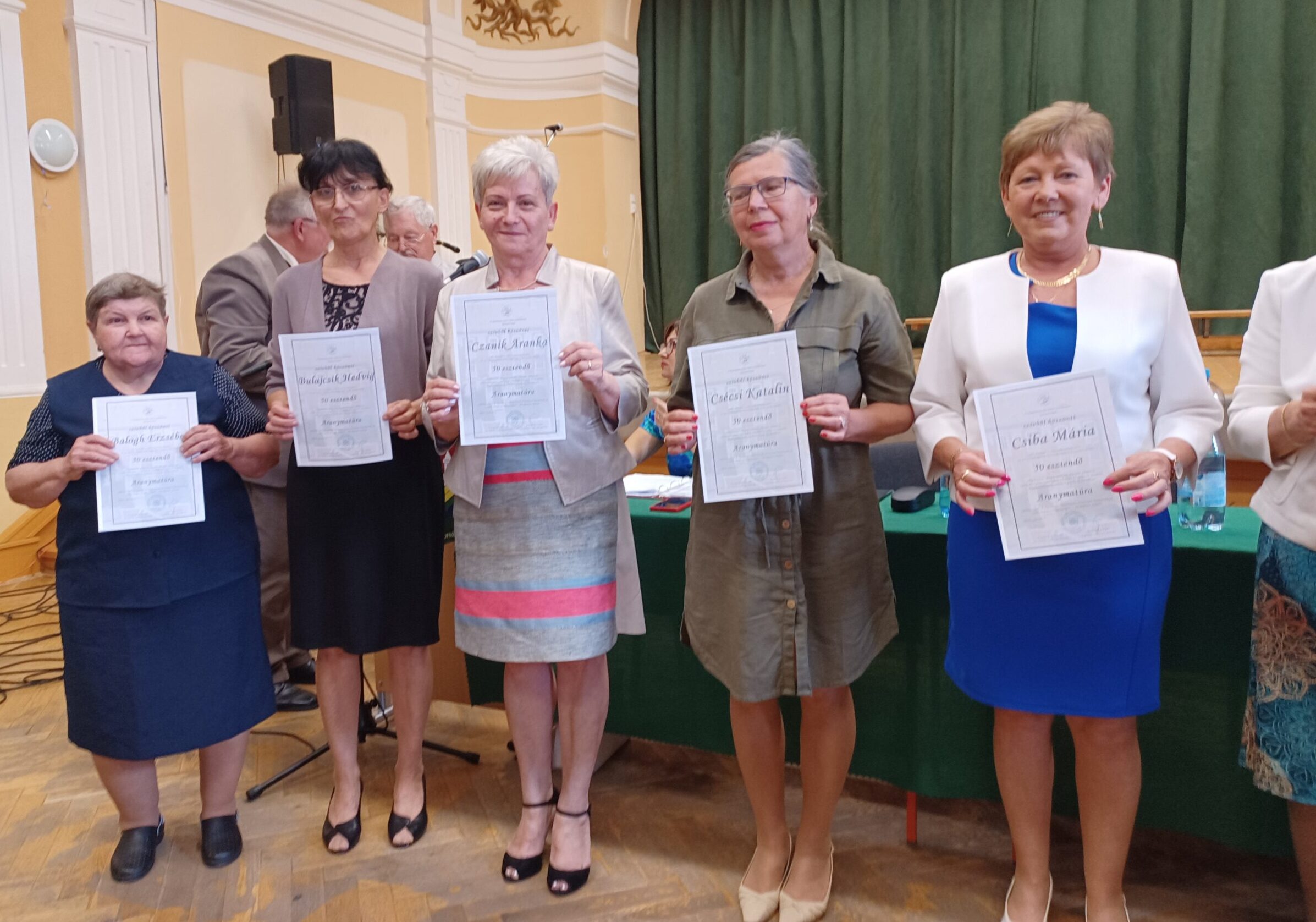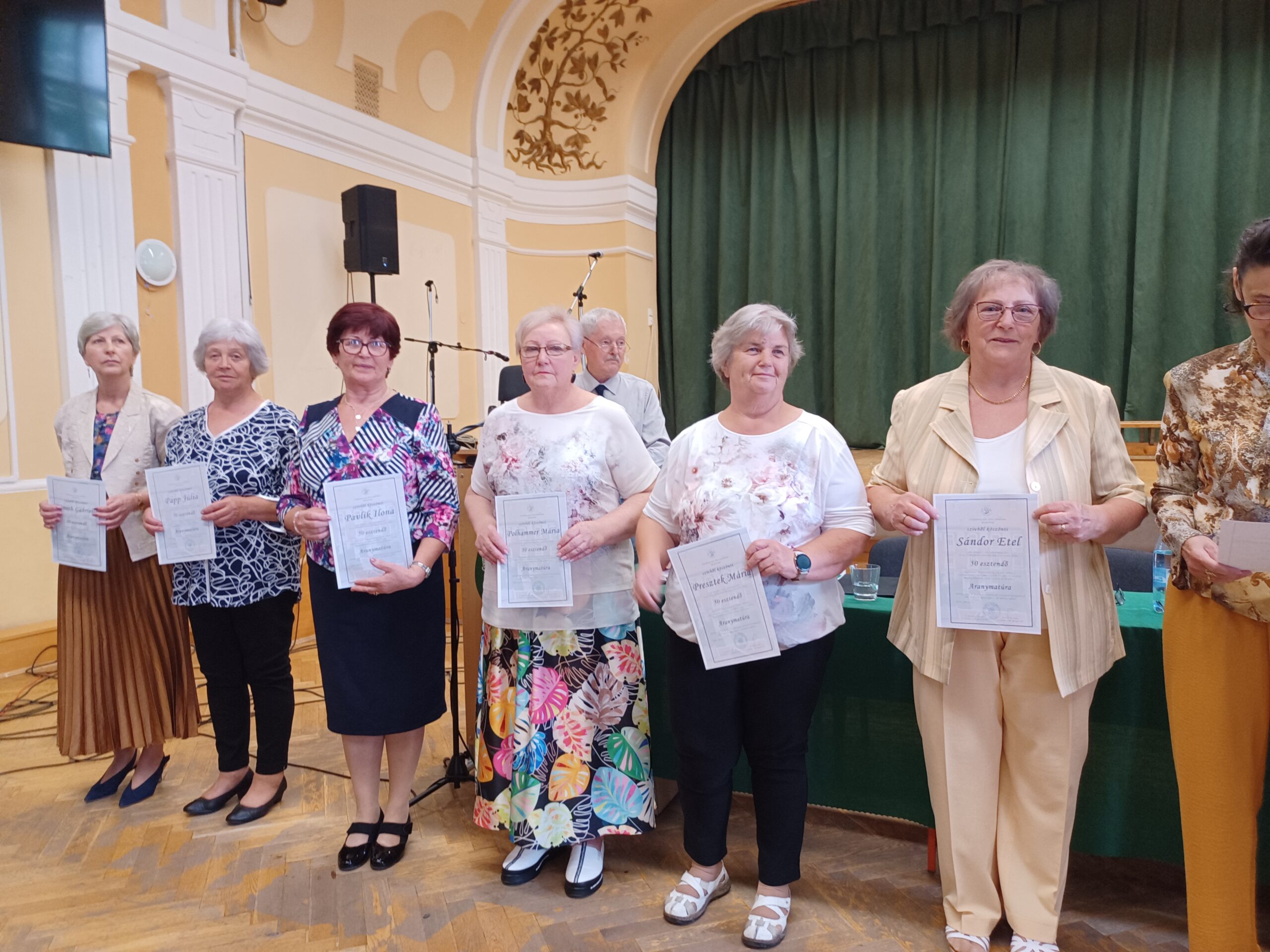 Az 50 éve érettségizettek arany, a 60 éve gyémánt, a 65 éve vas, a 70 éve gránit matúraoklevelet vehettek át, melyeket Andruskó Imre gimnáziumi igazgató, Langschadl István a Baráti Kör elnöke, valamint Konczer Veronika és Egri Szonja nyugalmazott tanárok adták át. A nagyszámú oklevelek átadásának menetét Kalácska József vezetőségi tag tartotta kézben.