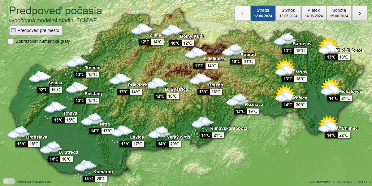 Szerdán is borongós, csapadékos és a megszokottnál hűvösebb időnk lesz. A legtöbb záporra Közép-Szlovákiában és Északnyugat-Szlovákiában kell számítani. Elvétve zivatarok is kialakulhatnak. A legmagasabb nappali hőmérséklet 18 és 23 fok között alakul. Az északi szél helyenként megélénkülhet (10-25 km/óra). Becsült csapadékmennyiség: 10 mm, viharok esetén 10-20 mm.