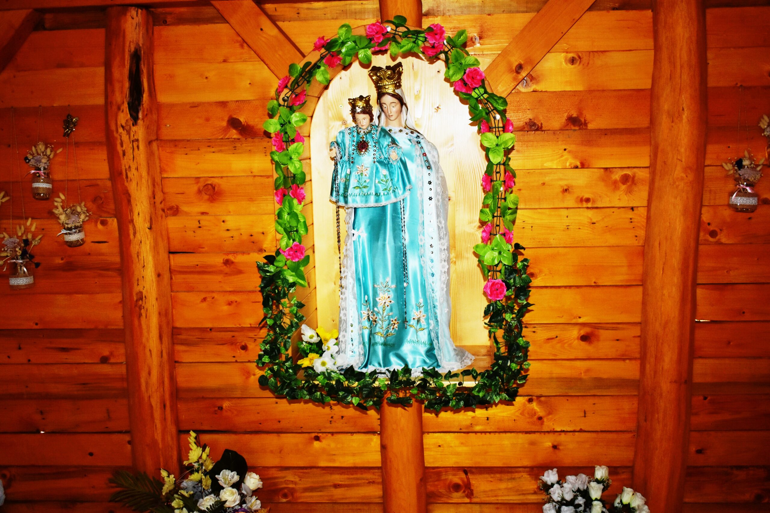 Hát a szegény ember nem tudott micsináni, szobrot nem tudott venni, fából faragott oda egy alakot, mint az asszony. Osztan odatette. Nagyon örült Mária neki.””