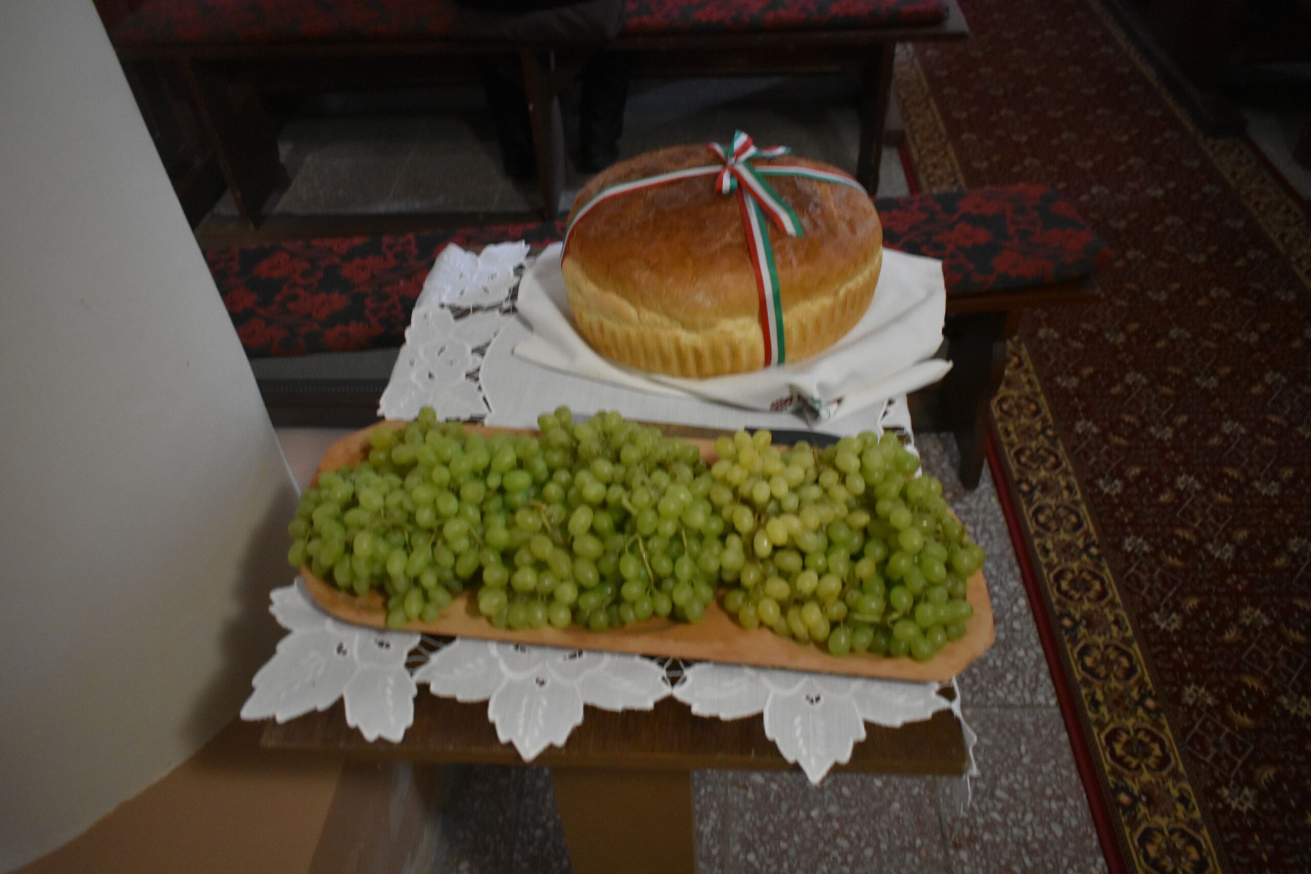 A plébános megáldotta az új kenyeret és az új bort. A szentmisét Páko Marika és a Mákvirágok tették magyaros dalaikkal emelkedettebbé.