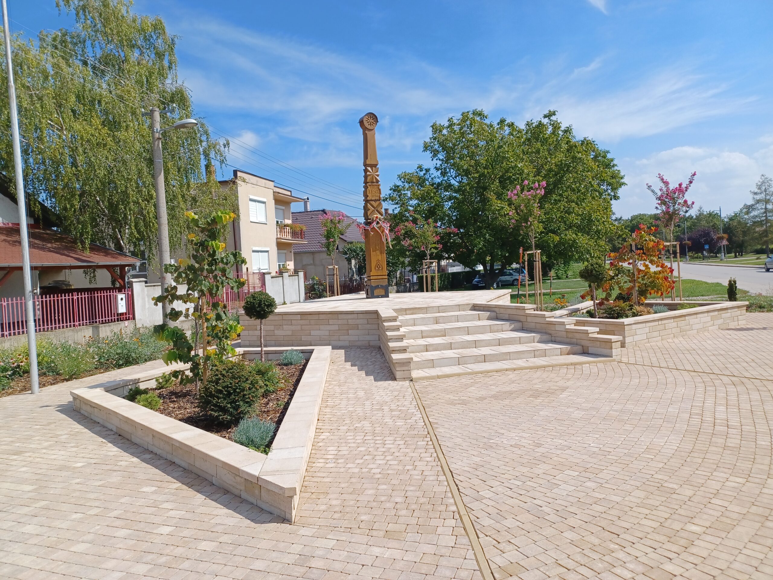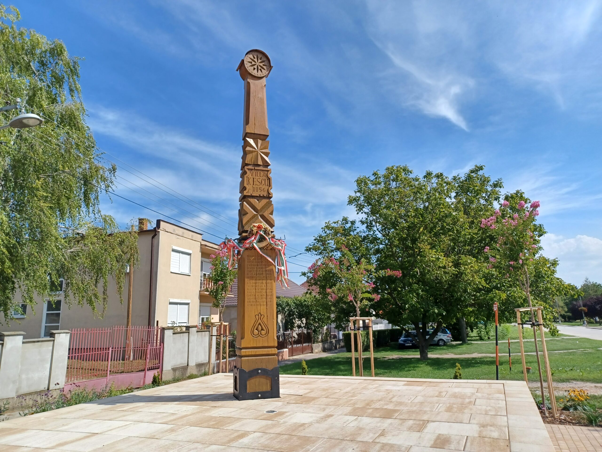 A faragott emlékmű az ezredforduló alkalmával készült, jelenleg pedig a körülötte lévő központi tér felújítására került sor a helyi önkormányzat projektjeként. Az átadóünnepségre júliusban, a Hídverő Napok alkalmából került sor, amiről a községben élő hozzátartozóink tájékoztattak bennünket.