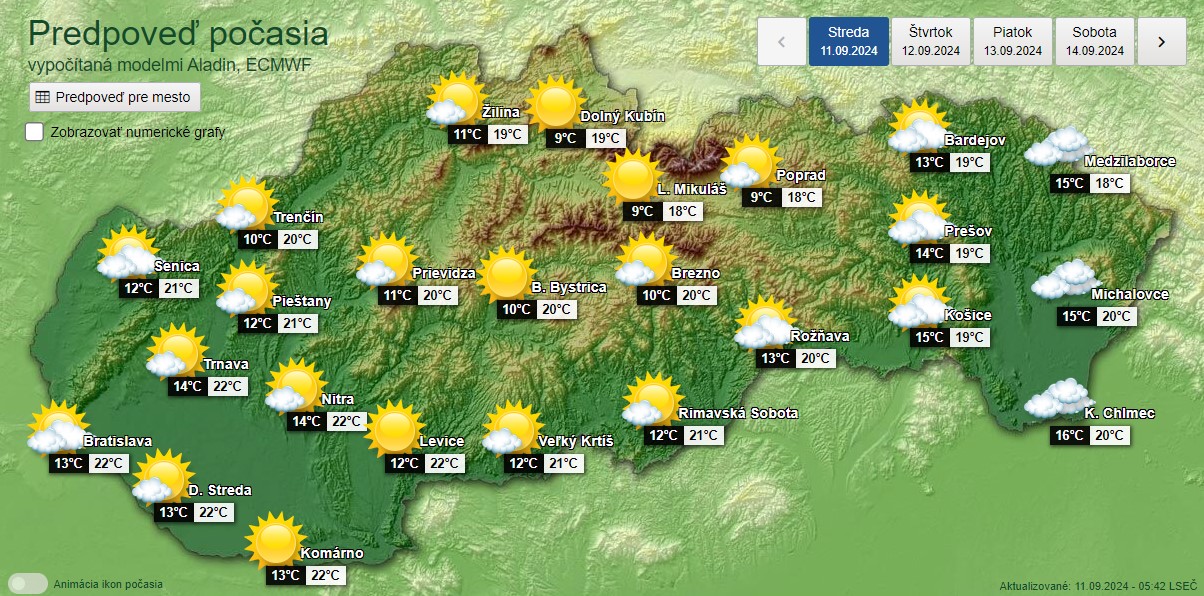 Túlnyomóan napos időnk lesz a munkahét közepén, csak elvétve növekedhet meg a felhőzet. Időnként futó záporok is kialakulhatnak. A legmagasabb nappali hőmérséklet 20 és 25 fok között alakul. A változékony, túlnyomóan nyugati-délnyugati szél helyenként megélénkülhet (20 km/óra).