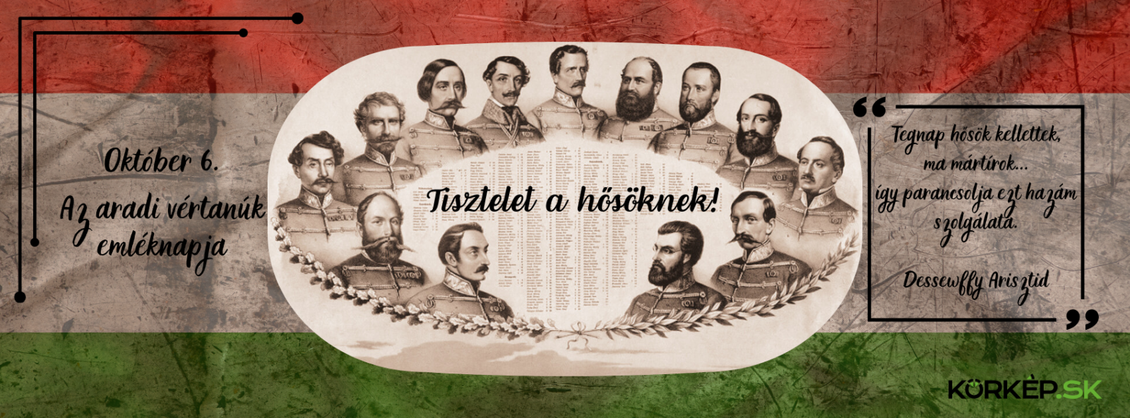 Az aradi vértanúkat a szabadságharc bukása után, 1849. október 6-án végezték ki, a bécsi forradalom és Theodor Baillet von Latour császári hadügyminiszter meggyilkolásának első évfordulóján. Bár az Aradon kivégzett honvédtisztek száma tizenhat, a nemzeti emlékezet mégis elsősorban az ezen a napon kivégzett tizenhárom tisztet tartja számon: