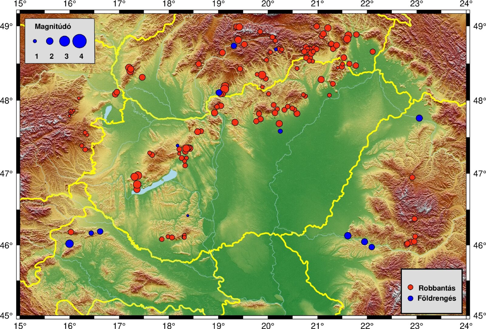 A mellékelt ábra az események epicentrumát és magnitúdóját szemlélteti: