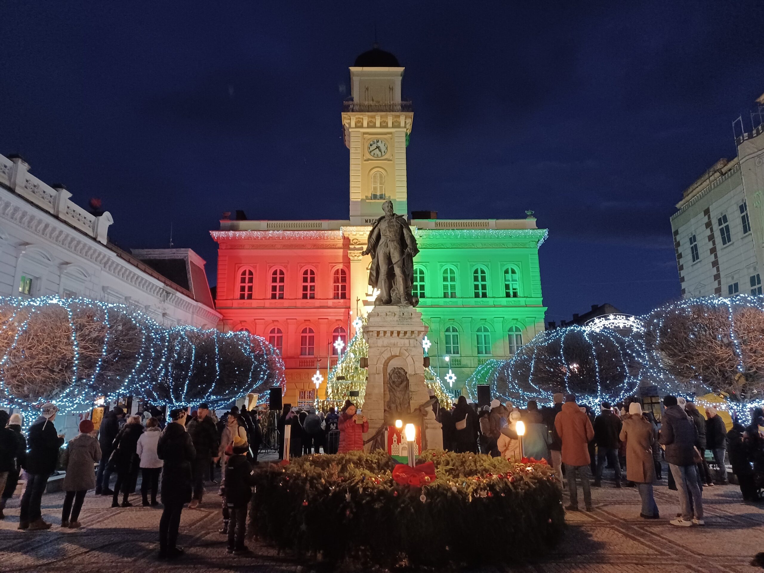 A Klapka téren a kora esti órákban egyre nagyobb tömeg gyűlt össze, és sötétedéskor az ünneplők jelentős része a tér közepét díszítő hatalmas adventi koszorú köré csoportosult, ahol délután öt órakor kigyulladt a koszorú harmadik gyertyájának fénye.