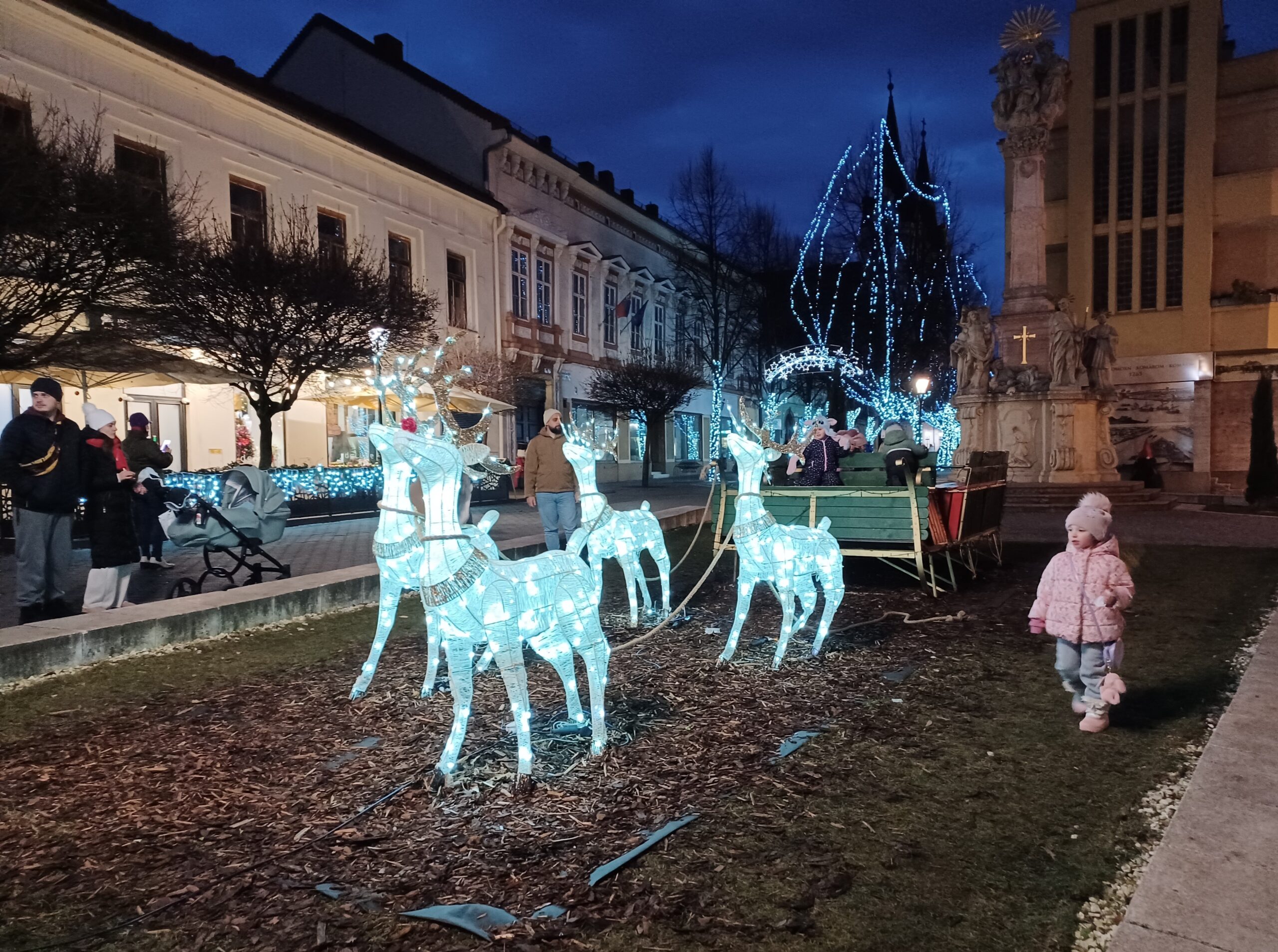 Egyre erősödő fényárral, kellemes zenével, finom illatokkal fokozódott az ünnepi hangulat Komáromban advent harmadik vasárnapján. Az időjárás is viszonylag kedvező volt, így számos család, baráti társaság elindult a város főterére, hogy jelen legyen a színes programsor és az adventi koszorú harmadik, egyetlen rózsaszín gyertyájának meggyújtásánál, amely az örömet – a katolikus egyház szerint pedig Szűz Máriát, az Isten anyját szimbolizálja.
