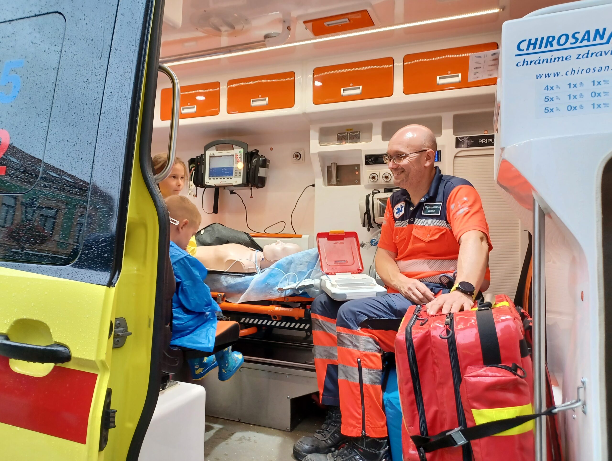 Az élménysor már a Tiszti Pavilon épülete előtt megkezdődött, ahol a Komáromi Tűzoltóság és Katasztrófavédelem, valamint a ZAMeD egészségügyi mentőszolgálat járművei álltak, hogy a gyerekek átélhessék a hős megmentő szerepét, közben ismereteket szerezzenek és betekintést nyerjenek az elsősegélynyújtás alapjaiba.