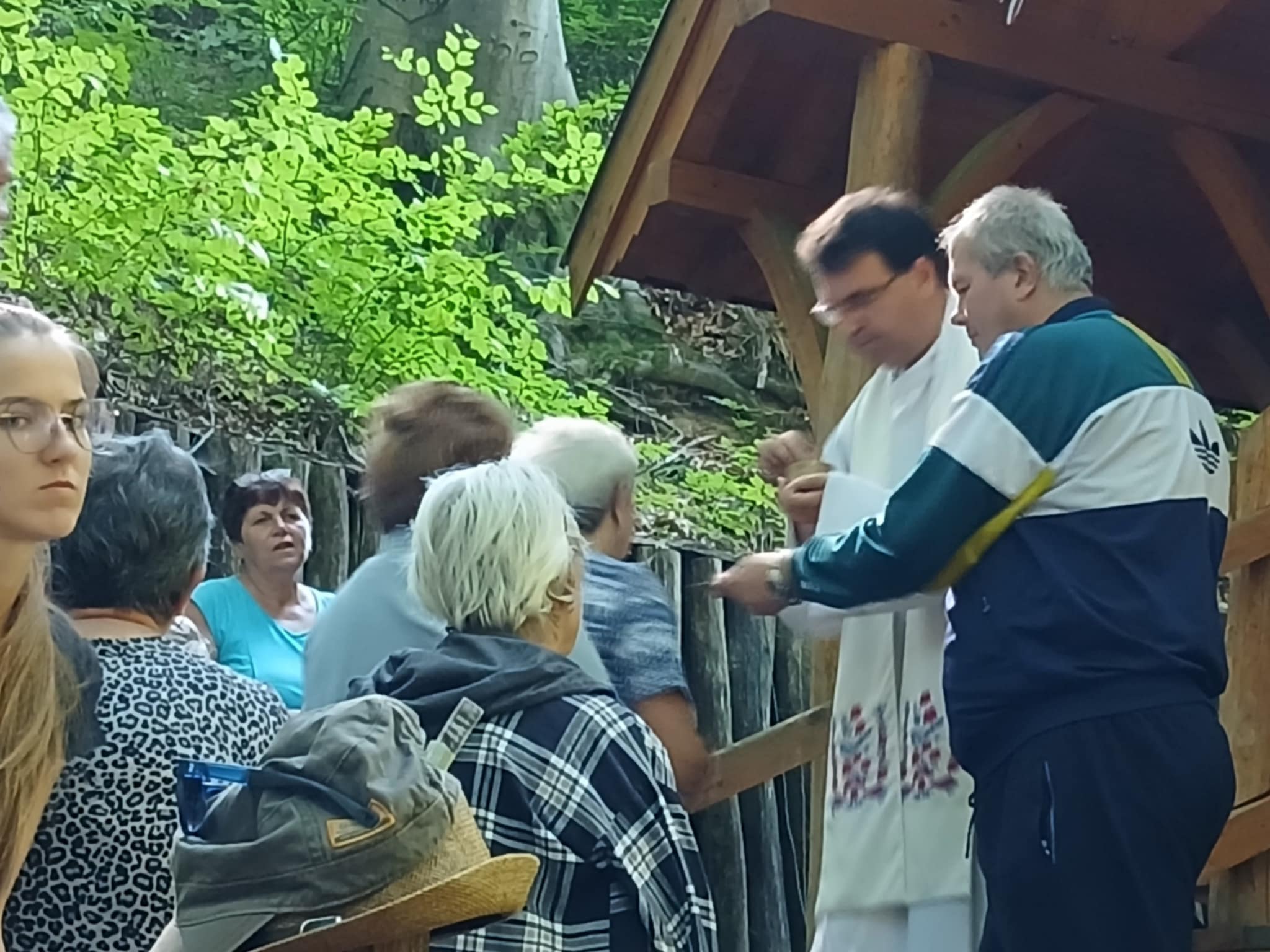 Megemlítette, hogy Csák András plébánosnak és Básti Róbert kántornak az áldozatos munkájáért nagy köszönet jár a hívektől. Csák Andrást még Vecseklőn, induláskor kérdeztük meg, mióta celebrál misét a zarándokoknak a kegyhelynél?