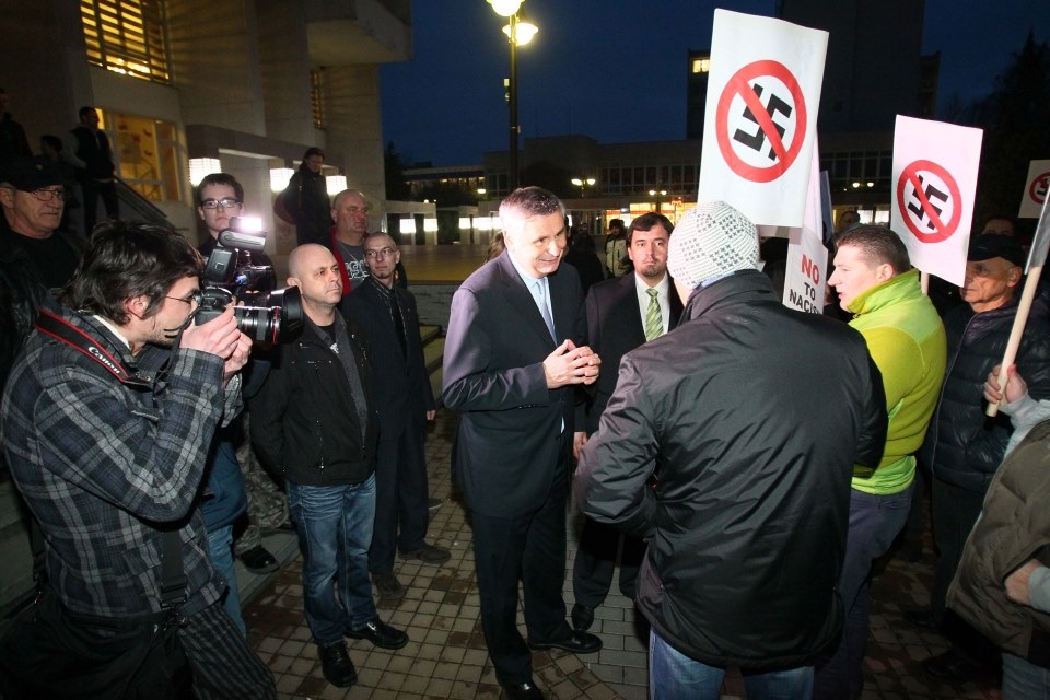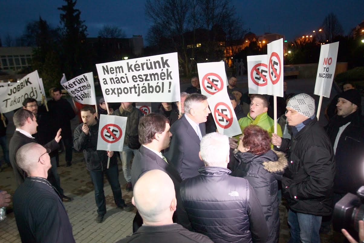 22.45 – videóval frissítve. Lakossági fórumot tartott a Jobbik Magyarországért Mozgalom Dunaszerdahelyen. Balczó Zoltánt, Szávay Istvánt a Jobbik felvidéki szervezőjét, Pallér Pétert a Most-Híd szlovák-magyar vegyespárt aktivistái, ideológusai és politikusa fogadták „Jobbik takarodj”, „Nem kérünk a náci eszmék exportjából” táblákkal.