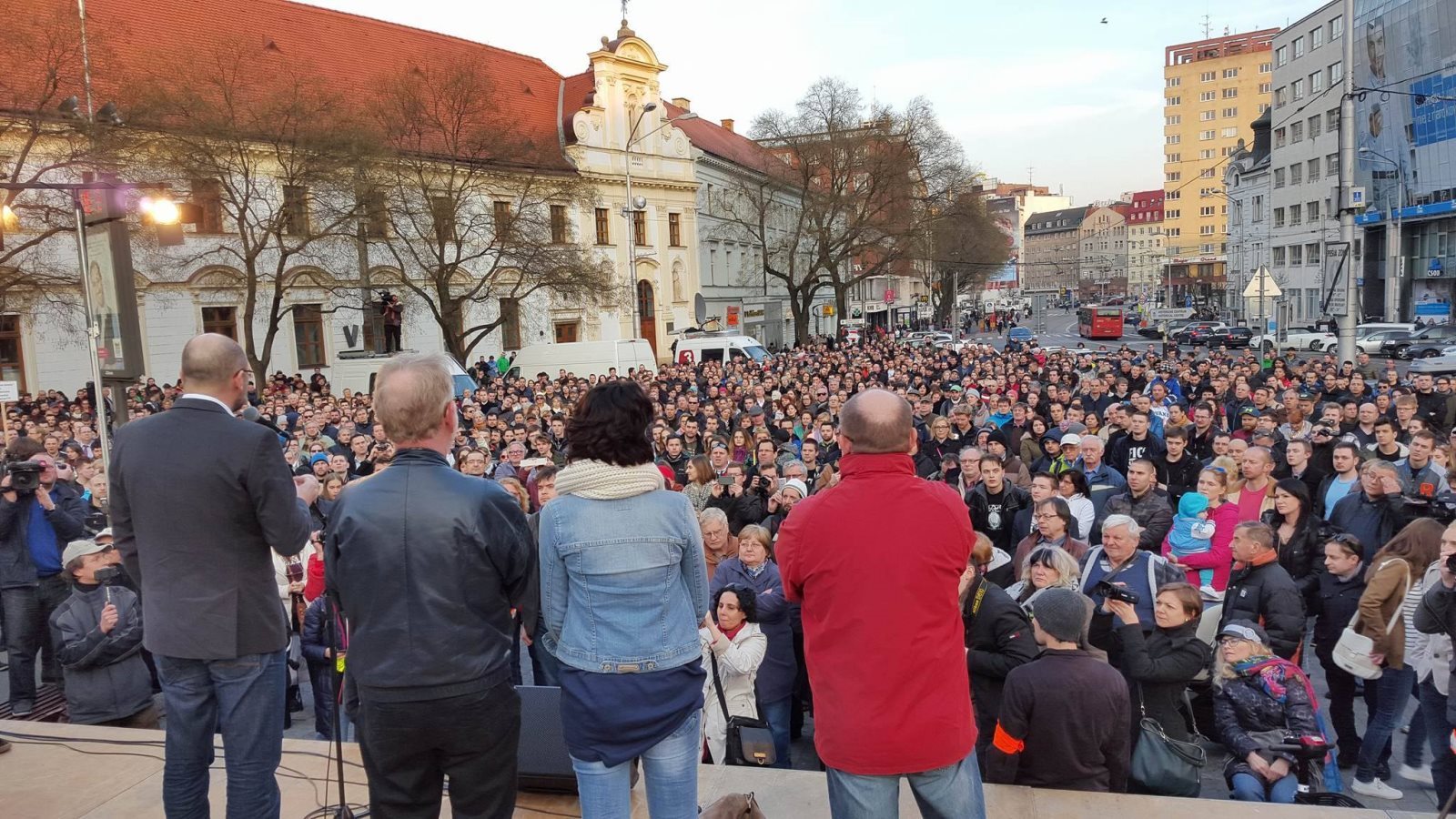 A színpadon többek között az SaS képviseletében Richard Sulík, Jozef Mihál és Lucia Nicholsonová, az OĽaNO szineiben Igor Matovič, Jozef Viskupič és Veronika Remišová, a Család vagyunk – Boris Kollár párttól pedig Peter Pčolinský szónokolt.