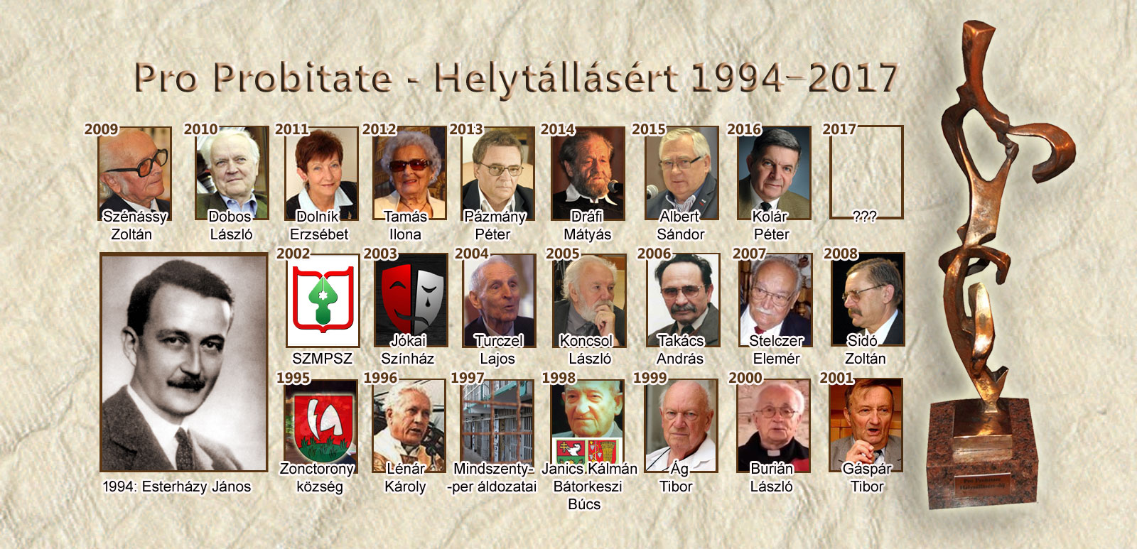 Érsekújvárban a Csemadok székházban adták át vasárnap a Magyar Közösség Pártja idei Pro Probitate – Helytállásért díját. Az ünnepségen Nagy Dávid alpolgármester köszöntőjében kiemelte, hogy az érsekújvári magyarság összetartó ereje az utóbbi években ismét erősödik, amit ma egy életmű elismerése tovább fokozhat. Az ünnepi délután kultúrműsorában Csáky Pál készülő drámájából – A katedrálisból Kürthy Lajos előadásban hangzott el egy részlet valamint Fekete Tamás zongorázott.