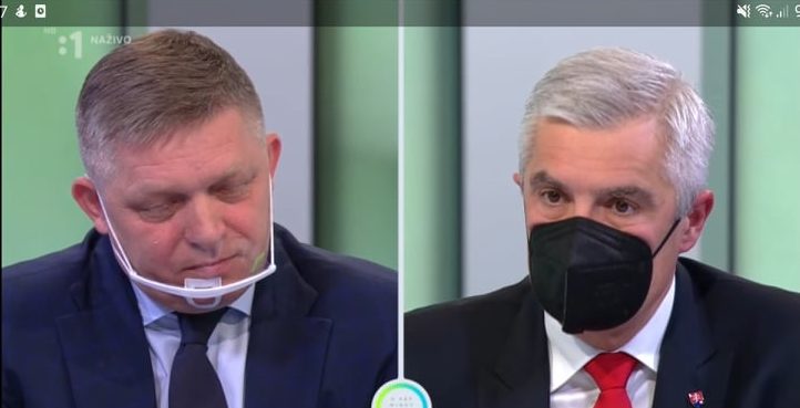 A közmémida vasárnapi politikai műsorában, az 5 perc múlva 12-ben Ivan Korčoknak Robert Ficoval szemben kellett megvédeni a szerződést, amelyet a héten sikerült átvinni a kormányon, vagyis a szövegezés már nem változtatható. Fico az ezer sebből vérző indoklásokat kihasználva viszonylag sikeres ellenkampányt épített fel, amelyet a műsorban is jól kiaknázott. Olyannyira, hogy egy ponton túl Korčok kénytelen volt az általa régóta kritizált Orbán Viktorra hivatkozni, akit hirtelen a közép-európai szuverenitás őrzőjének nevezett.