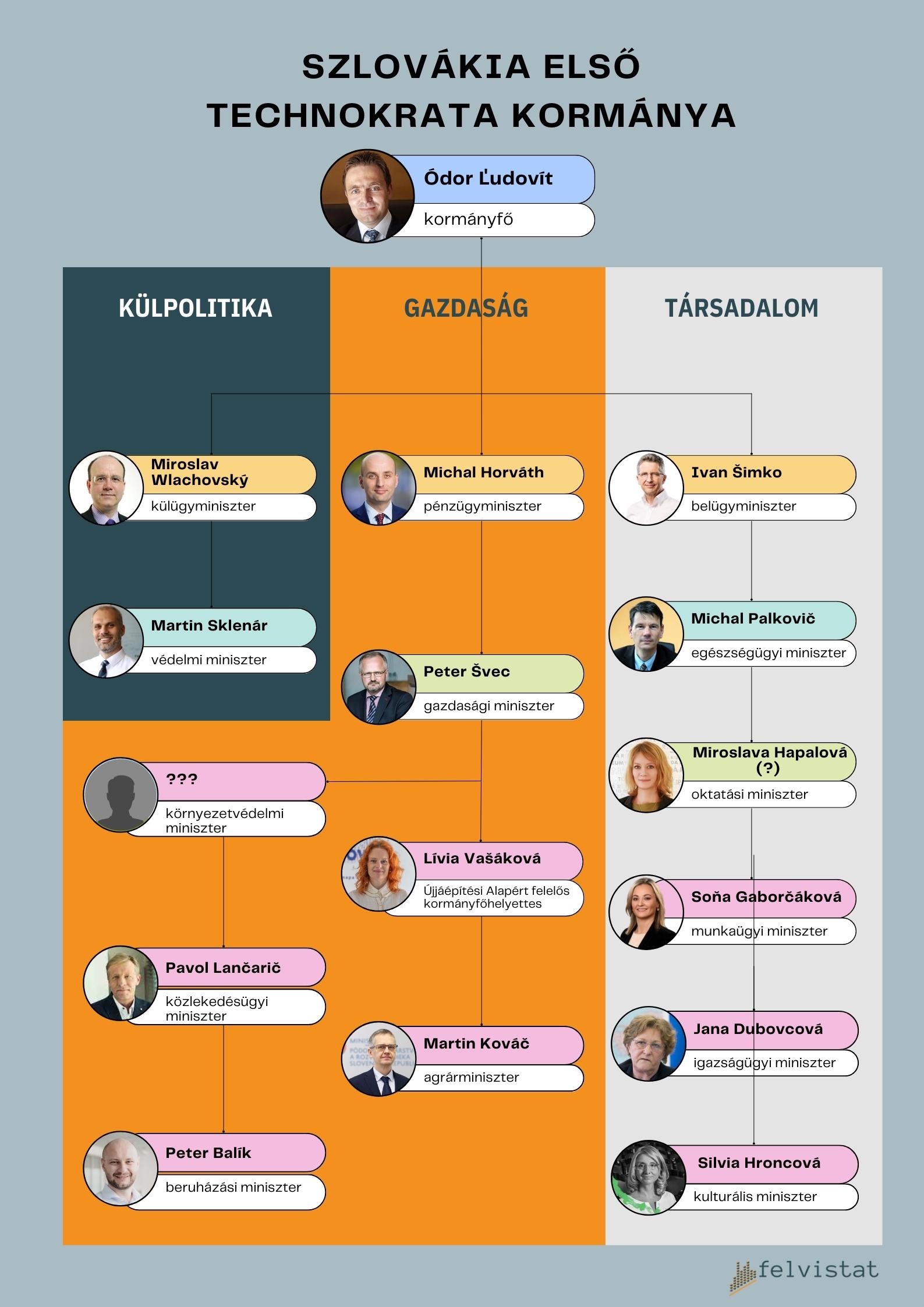 A nevek némelyike tehát még változhat, de a legtöbb kulcsminiszteri poszt várományosa már adott. A csütörtök délelőtti állapotot lásd az alábbi infografikánkon. Összességében elmondható, hogy a kormány alapvetően liberális beállítottságú. A jelöltek vagy az előző atlantista kormány államtitkáraiból és tanácsadóiból, vagy az Európai Bizottsághoz és más uniós intézményekhez, illetve a szlovák elnöki palotához kötődő technokratákból kerültek ki, vagy pedig az egykori SDKÚ érájából származnak.