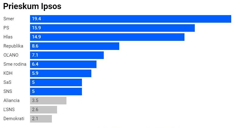 Rajtuk kívül parlamenti párt lenne még az SNS, SaS, KDH, Sme rodina, PS, a Hlas és a Smer is.  Robert Ficoék egyre inkább elhúznak a többiektől. Őket fej-fej mellett a Hlas és a PS követi 14-15 százalékkal, a többi párt az 5-7 százalékos tartományban található.
