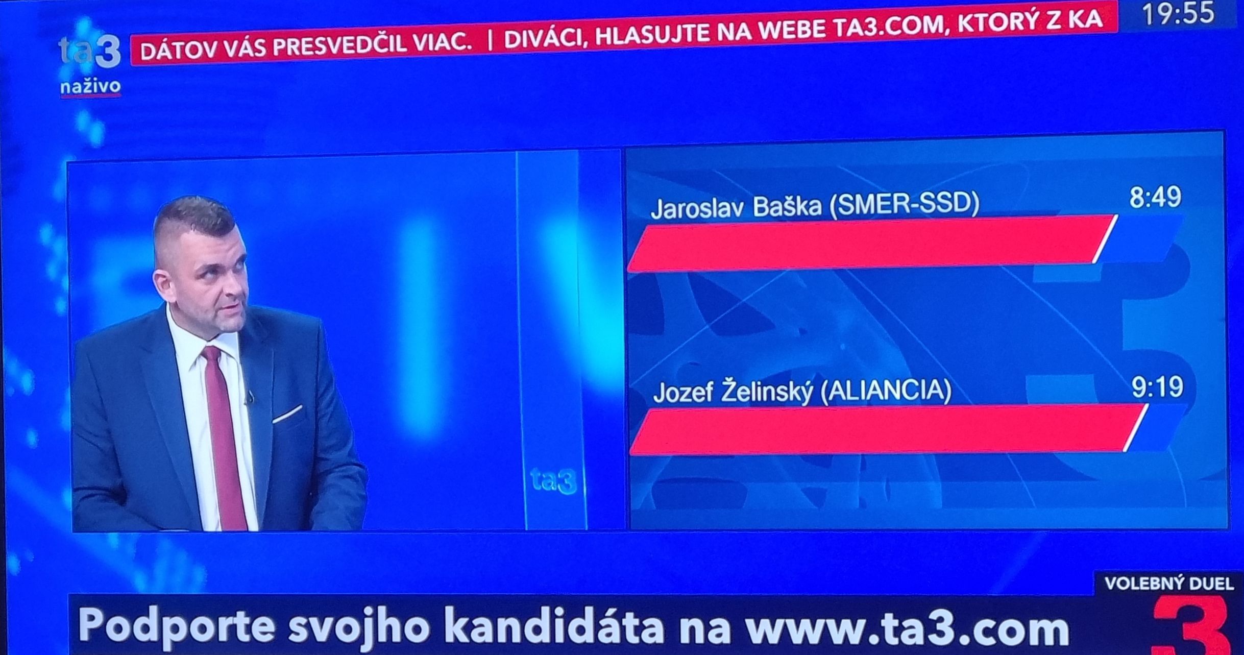 Mindkét jelölt 10-10 percet kapott nézetei kifejtésére, majd a végén egy percet arra, hogy szóljon a választóihoz. Želinský ez utóbbinál fél percet arra használt fel, hogy magyarul is szavazásra buzdítson.