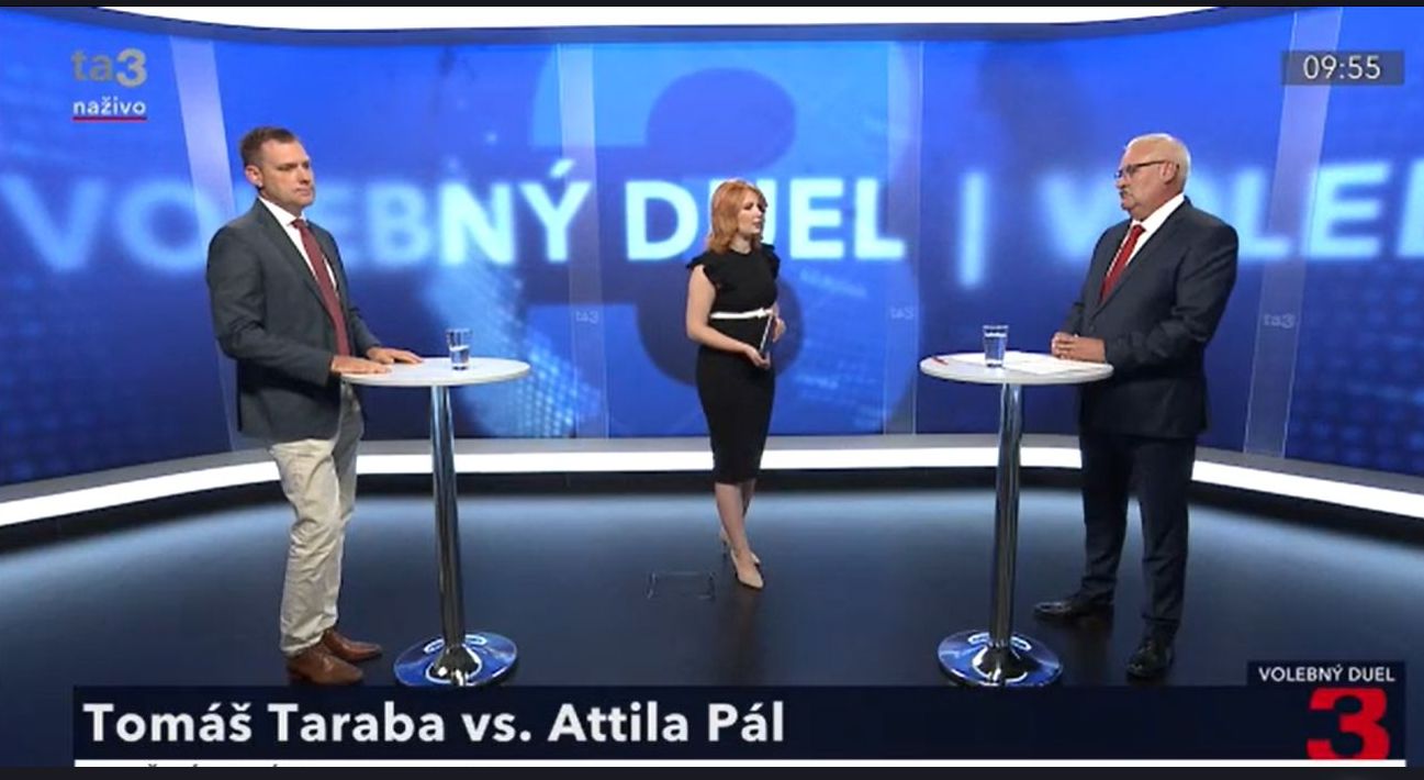 Pál Attila (Szövetség, Most-Híd platform), a választási lista 5. helyén induló jelölt vitapartnere Tomáš Taraba (az SNS listáján induló független jelölt) volt a TA3 hétfő reggeli vitaműsorában.
