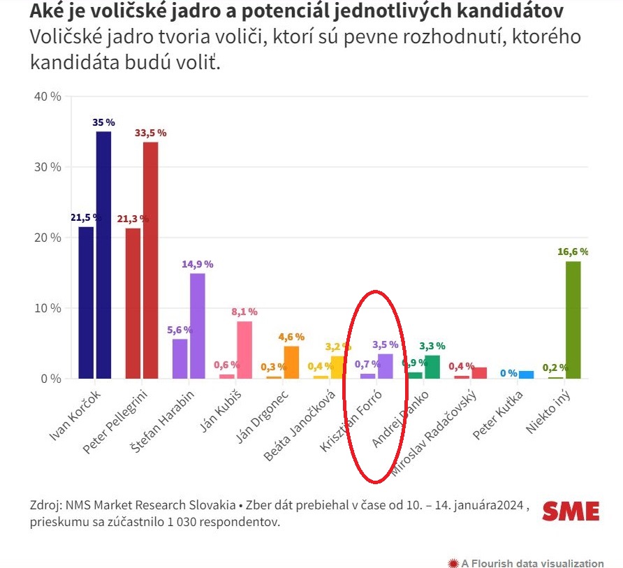 Természetesen nem várható el, hogy minden magyar nemzetiségi alapon Forróra szavaz majd. Ugyanakkor elvárható, hogy a Dél- és Kelet-Szlovákiában a magyarokkal együtt élő szlovákok, esetleg vegyes házasságban élők közül is akadnak majd, akik Forró Krisztiánt választják. Így a 7,75 százalék kitűzése reális cél.