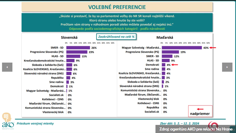 Ha februárban került volna sor parlamenti választásokra Szlovákiában, azt a Smer-SD nyerte volna meg a szavazatok 24 százalékt megszerezve. Második helyen a Ps végzett volna 22,6 százalékkal – derül ki az AKO ügynökség felméréséből.