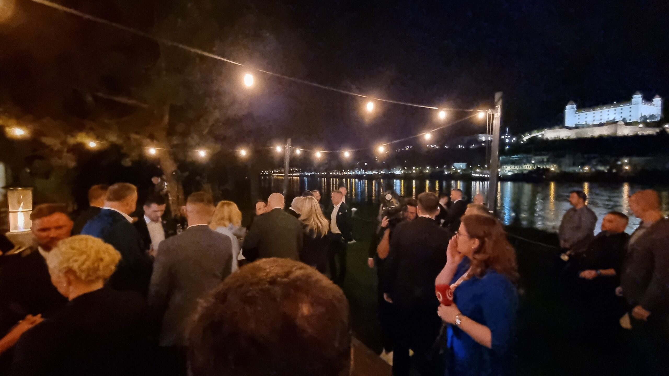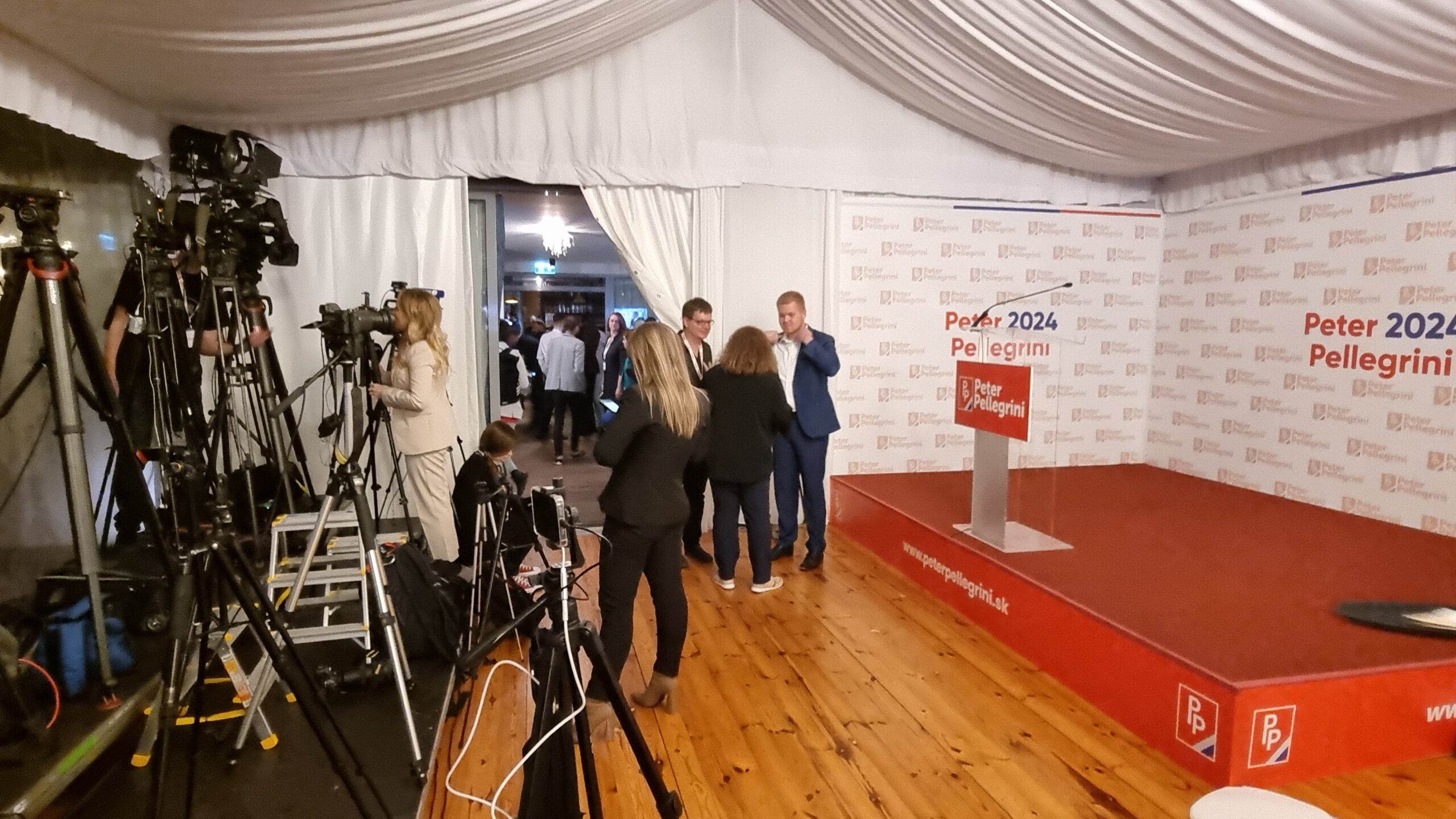 Érkeznek a meghívott vendégek és újságírók Peter Pellegrini (HLAS) államfőjelölt eredményvárójának helyszínére. Maga Peter Pellegrini nem sokkal este 9 óra után érkezett meg, és az újságírók kérdésére reagálva elmondata, hogy Andrej Danko (SNS) nem lesz jelen, Robert Fico kormányfőnek pedig más elfoglaltsága van. Ironikusan megjegyezte, hogy színészekre és művészekre sem számít az eredményváróján.