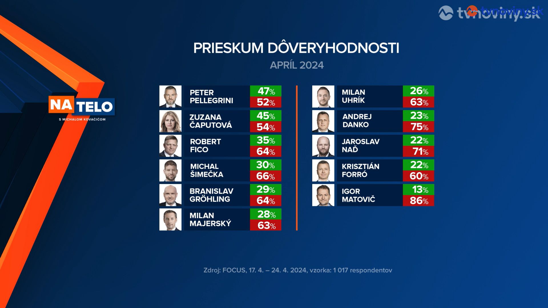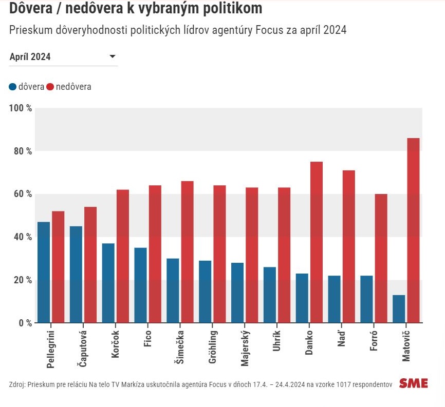 Ami viszont magyar szempontból szintén érdekes, az a Magyar Szövetség elnökének, Forró Krisztiánnak az előretörése. Forró ugyanis ismét lépett egy lépcsőfokot magasabbra, és Igor Matovičot megelőzve immár az országosan ismert szlovák pártok elnökeivel szerepel egy szinten a bizalmi indexet illetően (Az SNS elnökével, Dankóval, a Demokrati elnökével, Naďgyal, vagy a KDH elnökével, Majerskýval), közeledve a Republika elnökéhez, Uhríkhoz. Forró eredménye 22 százalék, ami egyértelműen a márciusi, áprilisi államfőválasztásnak köszönhető. Továbbá annak, hogy a második forduló okán a Smer és a Hlas elnökeinek partnerévé vált, amivel bekerült a szlovák nyelvű országos médiába és politizált.