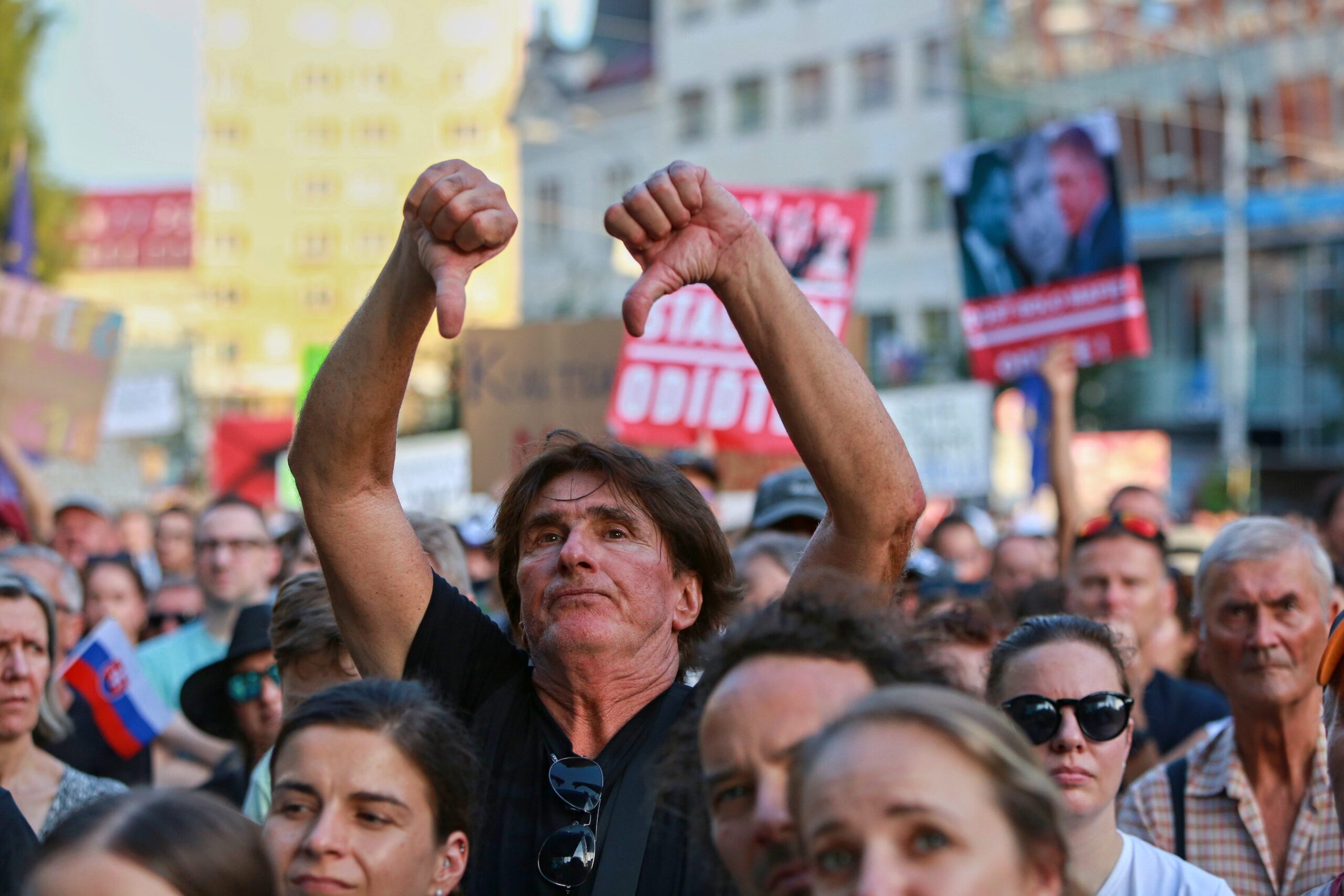 A pozsonyi Szlovák Nemzeti Felkelés terén újabb kormányellenes tüntetésre került sor az ellenzéki pártok szervezésében. Ezúttal azonban csak a PS és az SaS adta nevét az akcióhoz, a KDH látványosan távolmaradt az akciótól, ahol újra előkerültek a szlovák címeres szivárványos zászlók. A tüntetők a kulturális miniszter tisztogatásai (amelyeknek a Szlovák Nemzeti Színház és a Szlovák Nemzeti Galária igazgatója is áldozatul esett) és Dušan Kováčik volt speciális ügyész szabadlábra helyezése ellen tiltakoztak.