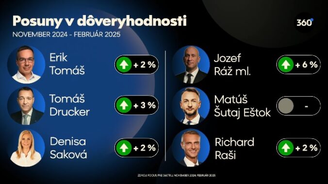 Mint a Focus ügynökségnek a 360tka.sk portál számára készített felméréséből kiderült, a legnagyobb bizalmat Erik Tomáš munka-, szociális és családügyi miniszter élvezi (43 százalék). A második Tomáš Drucker oktatási miniszter 42 százalékkal, még a harmadik Denisa Saková gazdasági miniszter, aki 38 százalékos bizalommal rendelkezik a polgárok körében.