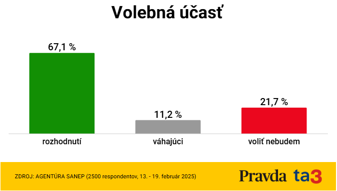 A SANEP ügynökség februári felmérése szerint hét párt jutna be a szlovák parlamentbe. A Smer és a Progresívne Slovensko szinte azonos támogatottsággal állnak az élen, míg a Hlas további visszaesést könyvelhetett el. A kormányalakítás így komoly kihívást jelentene.