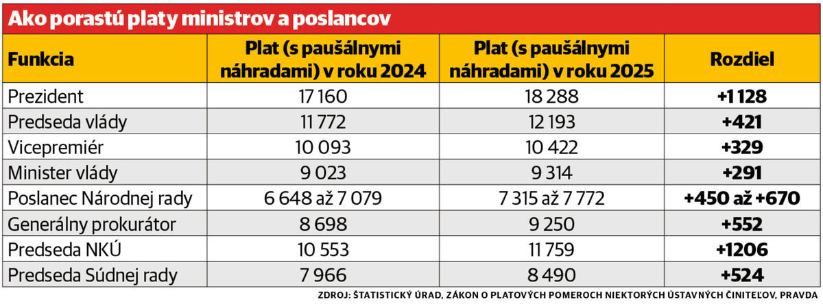 Így emelkedne a politikusok fizetése 2025-ben. Táblázat: Pravda