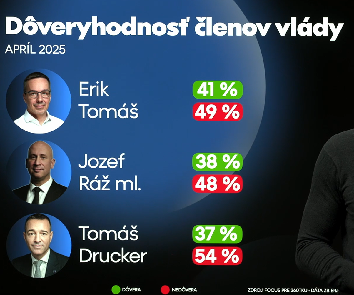 A kormány legmegbízhatóbb tagjának Erik Tomáš munka-, szociális és családügyi minisztert (Hlas-SD) tartják a szlovákiai polgárok – derül ki a Focus közvélemény-kutató intézet áprilisi felméréséből, amelyet a 360tka.sk portál számára készítettek. A miniszterben a megkérdezettek 41%-a bízik, míg 49% nem.