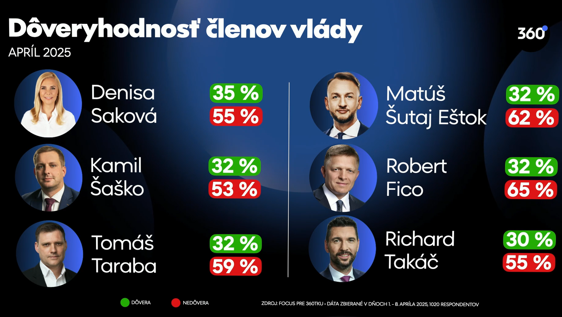 Saková után négy miniszter következik, akiket a válaszadók egyaránt 32%-ban tartanak megbízhatónak: Kamil Šaško egészségügyi miniszter (Hlas-SD), Tomáš Taraba környezetvédelmi miniszter (SNS jelöltje), Matúš Šutaj Eštok belügyminiszter (Hlas-SD), valamint maga a kormányfő, Robert Fico (Smer-SD).