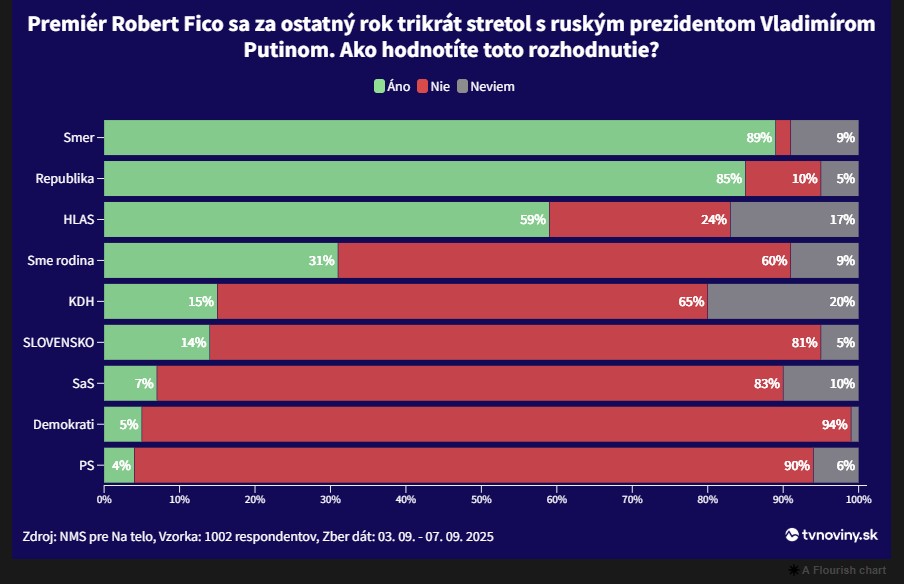 A felmérés 1002 fő megkérdezésével készült 2025. szeptember 3. és 7. között. A kutatásban arra a kérdésre keresték a választ, hogyan értékelik a szlovák miniszterelnök és az orosz elnök rendszeres találkozóit.