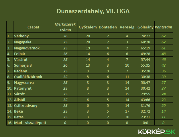 A bajnokság állása 26 forduló után: