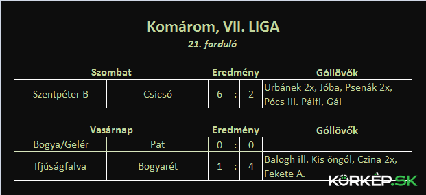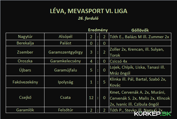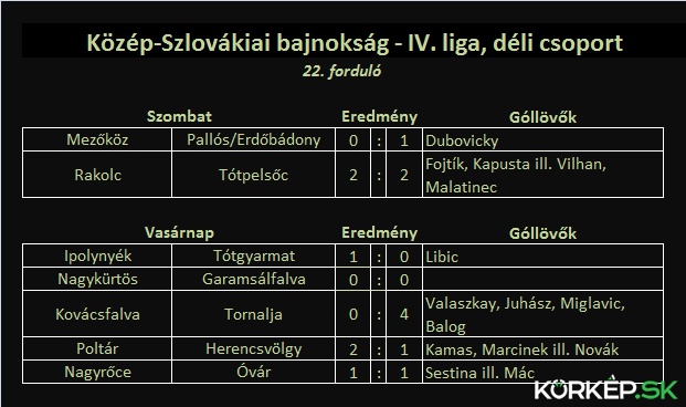 Portálunk Régiósfoci rovatában a hétvégi alsóbb osztályú regionális mérkőzések eredményeit foglaljuk össze a teljesség igénye nélkül. Újdonságként bővítettük összefoglalónkat a Közép-Szlovákiai bajnokság IV. ligájának déli csoportjával.