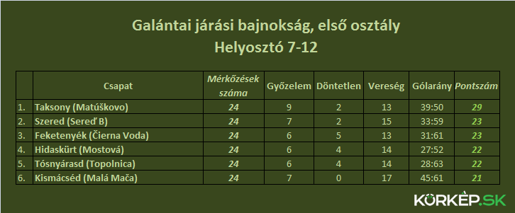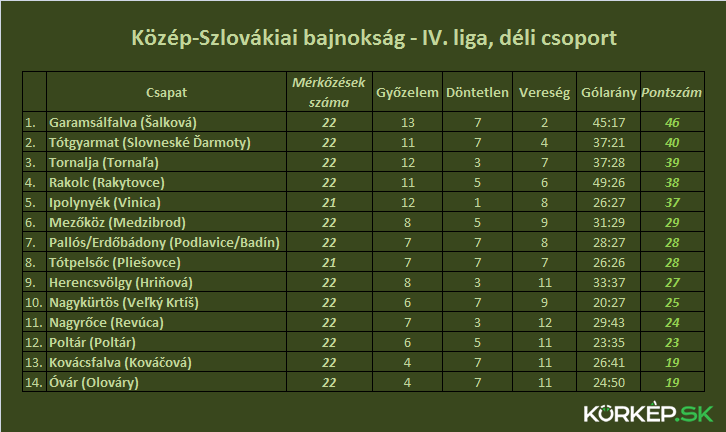 A bajnokság állása 22 forduló után: