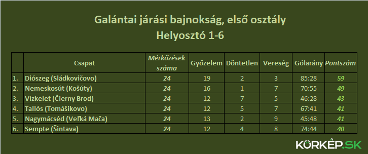 A bajnokság állása 24 forduló után: