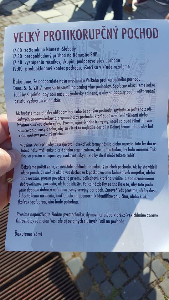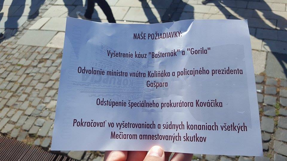 A 2. korrupcióellenes tüntetés már nem csak egy helyszínen zajlott. Pozsonyon kívül Kassán és Prágában is tüntettek, jövő héten pedig Zsolnán és Eperjesen is hasonló rendezvényt terveznek. A résztvevők többek között a Speciális Ügyész és Robert Kaliňák belügyminiszter távozását követelik.