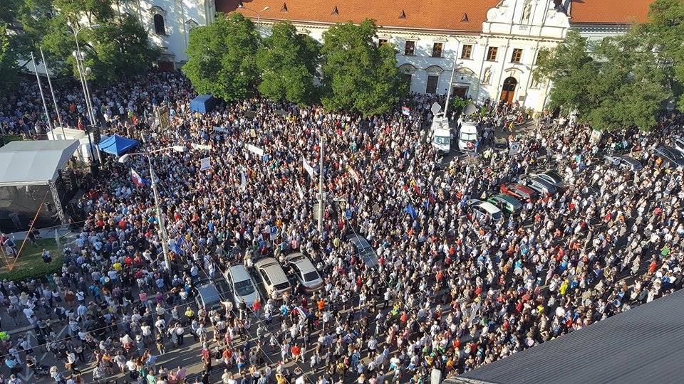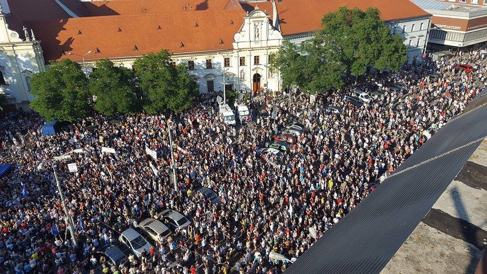 Elkezdődött a második, nagy korrupcióellenes tüntetés Pozsonyban. A szervezők ezúttal sem vallottak szégyent, a résztvevők létszáma az első tüntetés mintegy 10 ezer fős létszáma körüli volt. A tömeg a Kormányhivatal épülete előtt gyülekezett, majd pontban ötkor elindult a Szlovák Nemzeti Felkelés térre (lásd videóink).