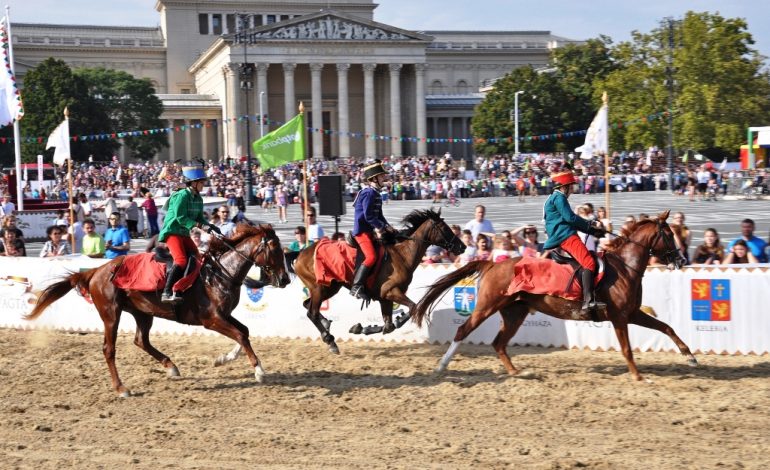 A Millenniumi emlékmű körül kialakított különleges pályán az egész Kárpát-medencét képviselő 72 település lovasai állnak szombaton rajthoz, hogy megmérkőzzenek a 2017 leggyorsabb lovasa címért, a győztesnek járó ötmillió forintért, valamint az 1848-as vándorszablyáért.