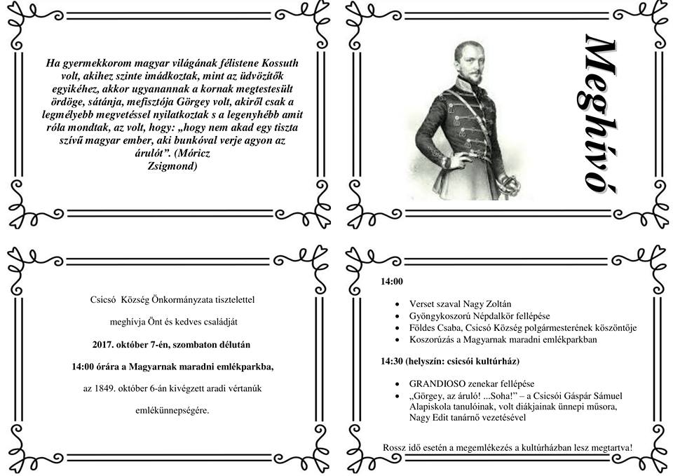 17,00 órai kezdettel rövid történelmi visszatekintés az 1849 októberi eseményekre;