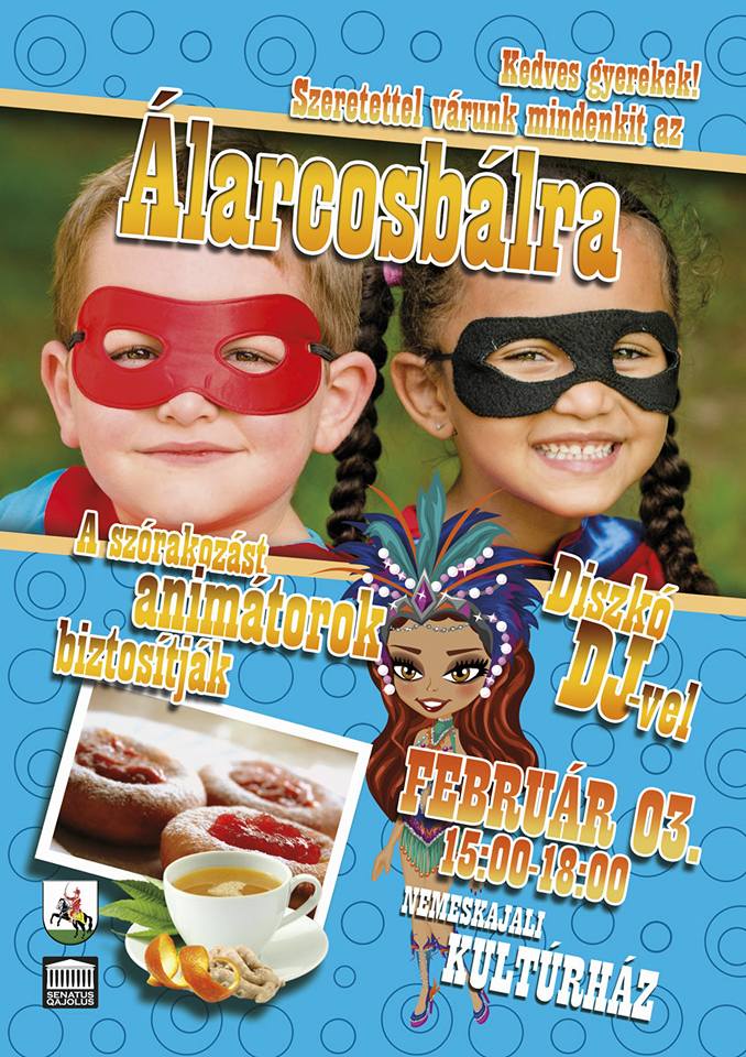 Nemeskajalon február 3-án 15.00 és 18.00 óra között álarcosbált tartanak, ahol a programot animátorok biztosítják a helyi kultúrházban.