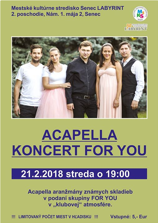 Február 21-én, szerdán 19:00 órakor immáron második alkalommal lép fel a szenci Labirintus által szervezett eseményen a For You zenekar.