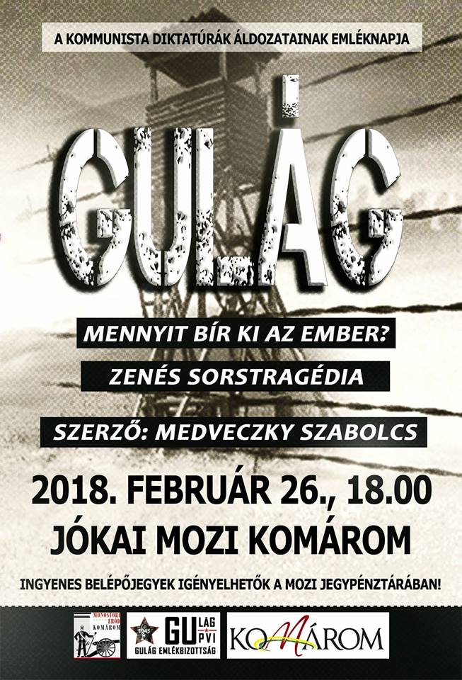Komárom (HU) város szervezésében a kommunista diktatúrák áldozatainak emléknapján Medveczky Szabolcs: Mennyit bír ki az ember? című zenés sorstragédiáját mutatják be a Jókai moziban, február 26-án, 18.00 órától.