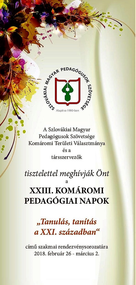 Tanulás, tanítás a XXI. században címmel szervezi meg a Szlovákiai Magyar Pedagógusok Szövetsége a XXIII. Komáromi Pedagógiai Napokat. A részletes program itt érhető el.
