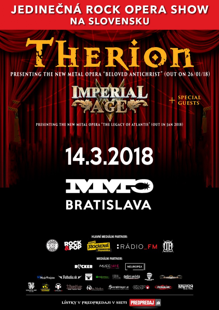 Az európai turné keretén belül érkezik Szlovákiában az egyik legjelentősebb szimfonikus metálzenekar, a svéd Therion. Március 14-én, szerdán 18.30 órától a pozsonyi Majestic Music Clubban mutatják be a Beloved Antichrist elnevezésű rockoperájukat. Ez az egyedi rock-metál opera Vlagyimir Szolovjov Az Antikrisztus története című művén alapszik.