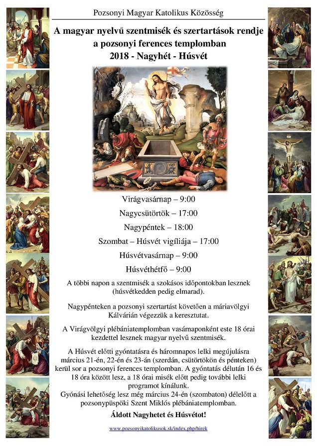 Március 29-től (csütörtök) április 2-ig (hétfő) – A magyar nyelvű szentmisék rendje a pozsonyi ferences templomban