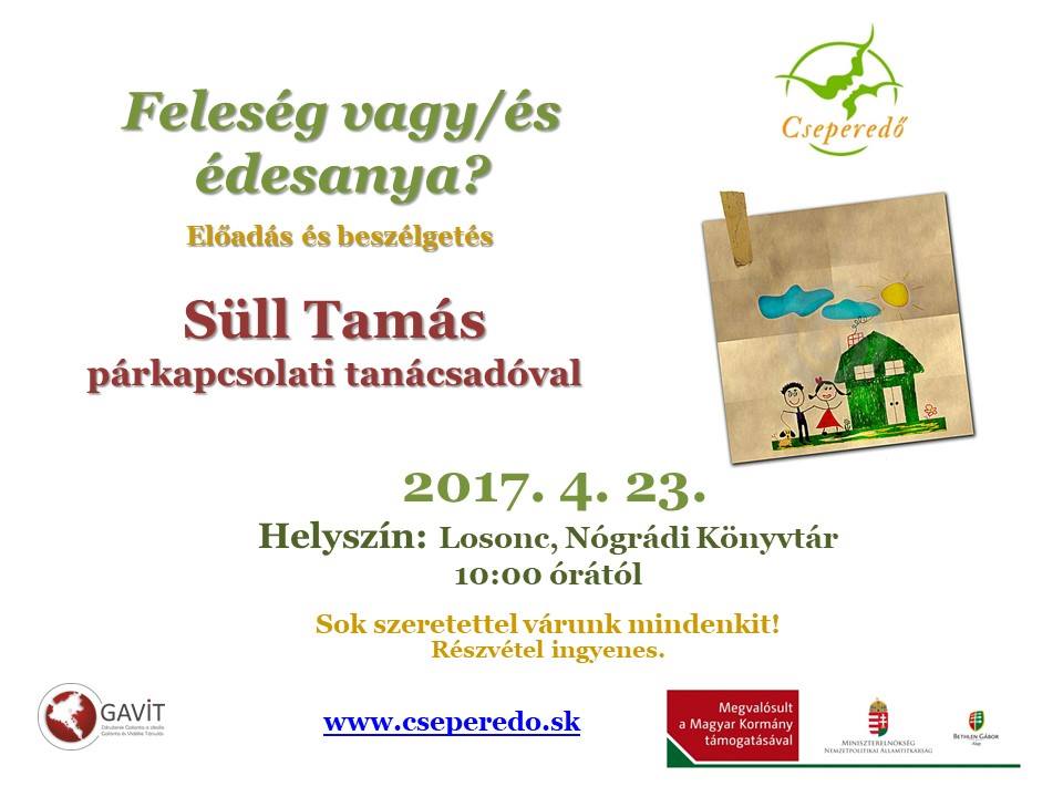 Április 23. (hétfő), 10.00 óra, Losonc, Nógrádi Könyvtár – Feleség vagy/és édesanya?